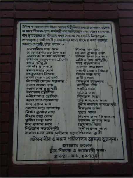 List of names of Hindu students and professors massacred at Jagannath Hall on night of 25th March, 1971 by the Pakistani Army. Click to enlarge. Photo credit: Udayan Chattopadhyay.
