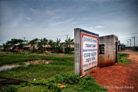 10. The transit camp of POSCO, India that has been set-up for the few villagers who are so-called "Pro-POSCO". However, interviews revealed that they have been kept here forcefully since they have nowhere to go and are given Rs.20/- (50 cents) a day per head by the government for all their expenses, including food and other ration. The condition of the camp is abyssmally low. There are about 52 families sharing around 20 toilets and bathrooms. The huts leak when it rains and conditions are extremely unhygienic specially for old people and children.