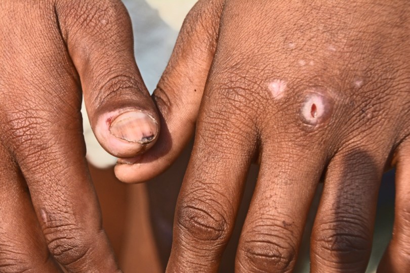 Figure 6: The left hand of Vijay had been pierced through and through with a hot iron needle and the nail of the right thumb was pulled with a pointed plass.