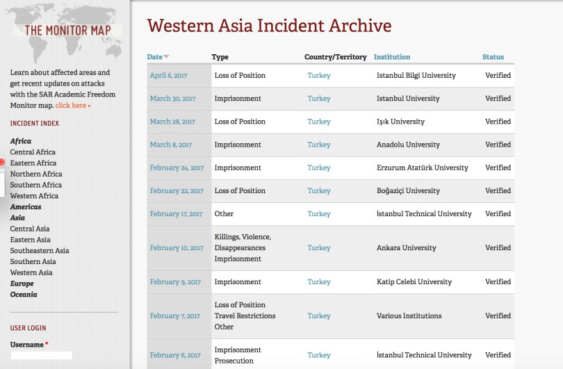 Turkey Universities 30/04/2017 1950 × 1280 Erdogan Gets A Degree from Jamia Millia Islamia and Everyone Else’s Father is in Prison in Istanbul Screenshot from the Scholars at Risk Webpage