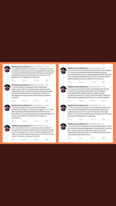 Other faculty have written on different aspects of why compulsory attendance is neither necessary nor desirable; and in the case of research scholars, utterly infeasible. See Kavita Singh in Wire and Scroll; G Arunima in Indian Express; Kamal Chenoy in Daily O; Ayesha Kidwai in Indian Express; Avijit Pathak in Wire.