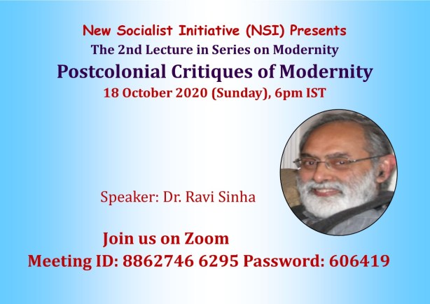 ( New Socialist Initiative presents the 2nd Lecture* in the Series on Modernity, 18 th October 6 pm IST)