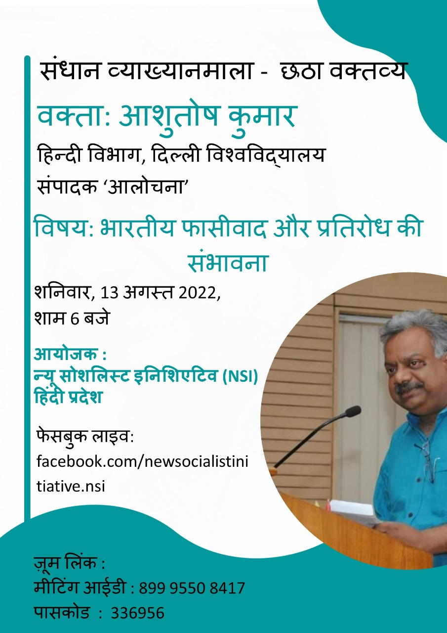 Leading Critic Ashutosh Kumar, Editor ‘Aalochana’ , who teaches at Department of Hindi, Delhi University will be delivering the sixth lecture in the ‘Sandhan Vyakhyanmala Series’ ( in Hindi) on Saturday,13 th August, 2022, at 6 PM (IST).