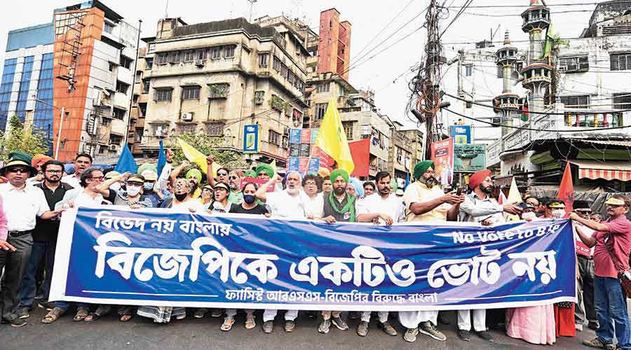 A demonstration by the ‘No Vote to BJP’ campaign in Kolkata, (older image) courtesy The Telegraph