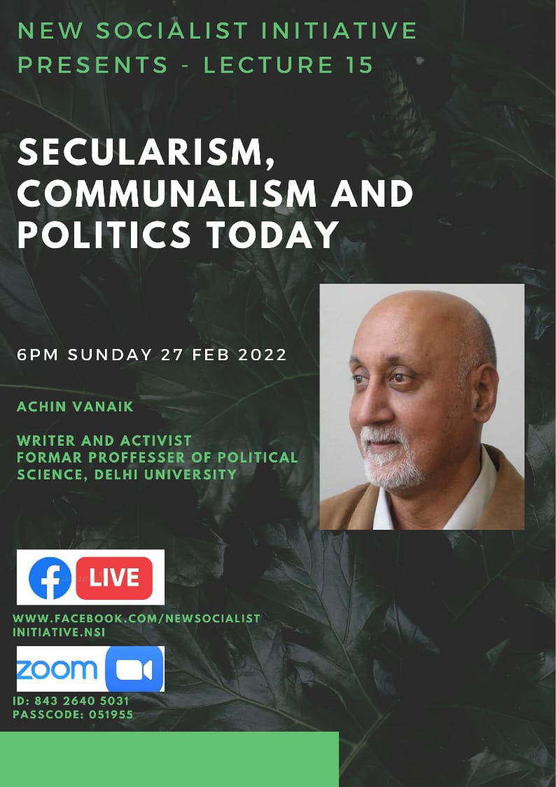 The lecture will be live on facebook.com/newsocialistinitiative.nsi