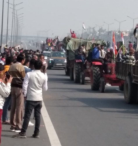 Farmers break barricades to enter Delhi, peacefully, disciplined. Police have blocked off roads, but people gather along the roads, on rooftops, to greet our heroes.